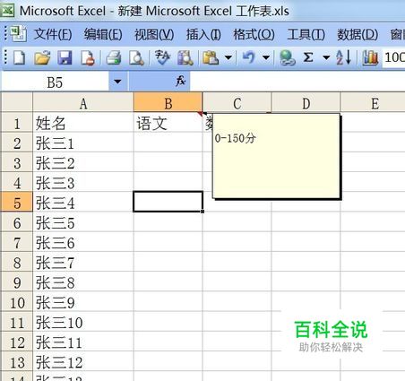 点击确定按钮,回到电子表格中,进行测试, 我们输入一个0-150的数据可以正常录入,如图1,而录入范围外的数据将提示出错;如我们录入160,将报错;