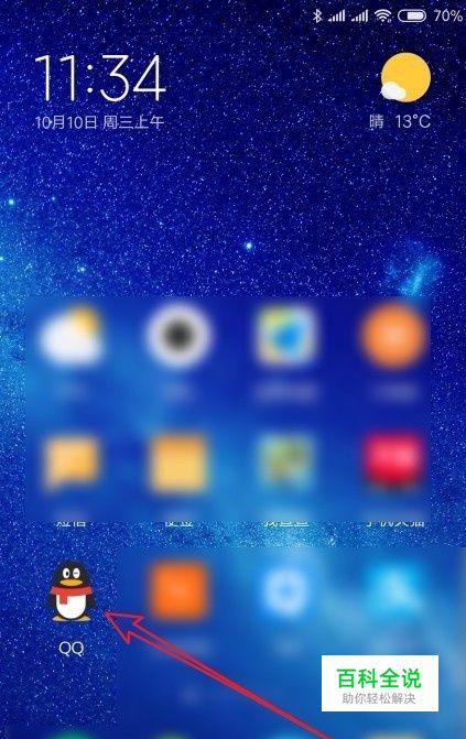 在手机上左右滑动屏幕,在屏幕上找到安装好的QQ的图标。