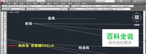 倒斜角的快捷键为CHA+A。经常把45度的斜角称为C角,可以进行倒斜角的图形有直线、射线、构造线、多段线。