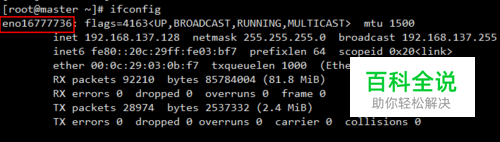 cd /etc/sysconfig/network-scripts 进入到网卡目录,查看网卡文件名称为ifcfg-eno16777736