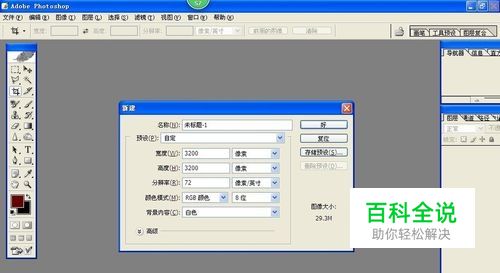 首先,打开PS软件,新建一个页面,宽度与高度都改为3200像素。如下图所示: