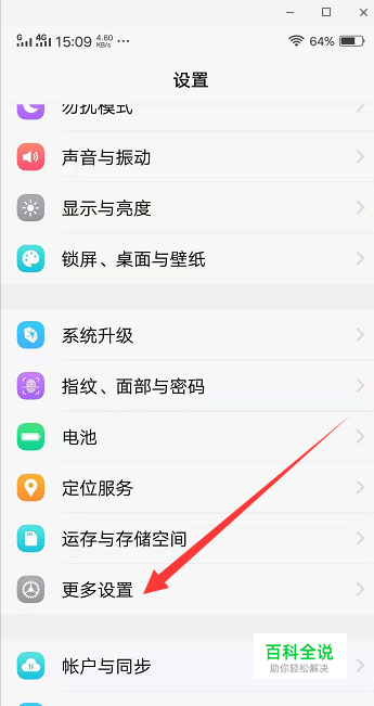 打开设置的页面,屏幕往下滑。找到“更多设置”