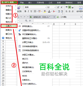 打开WPS的excel或者word,这里以excel为例,点击左上角的“WPS表格”,出现下拉菜单,点击“工具”,选择“选项”,如图