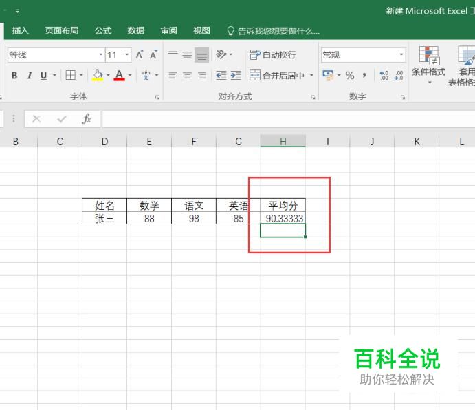 最后,即可看到刚才框选的单元格已经显示出了平均分结果。