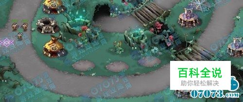 开局如图所示:由于我魔灵不给力,秒不掉小怪,索性就用炮塔防守了,第一波一会再补一个魔法塔,援兵冷却就放下面,缠绕留给第三批豹子,很简单。