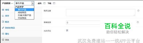 添加产品: 添加产品名称 添加产品的详情 产品数据-如下图,选择添加产品的类型,根据产品情况选择产品类型;