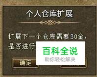 玩家还可以在仓库NPC处通过支付一定的金额来扩充个人仓库的数量,如下图所示: