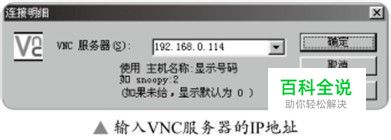 2、客户端连接 客户端的程序名是“Vncviewer”,在客户端机器中运行程序后,首先要在弹出的对话框中输入VNC服务器的IP地址。