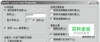 1、配置服务器 因为WinVNC是分为服务器端和客户端的,所以我们要分别对服务器端和客户端进行配置才行。首先来看看服务器端的配置,我们首先要在“密码”项中输入客户端连接时所需密码(不能为空),接着要根据需要选或不选“禁用远程键盘与指针器”和“禁用本地键盘和指针器”两项。