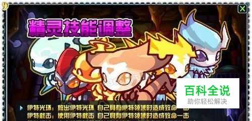 主要调整技能有 伊特光环:放出伊特光环,自己具有伊特领域时造成致命一击【普通特攻】 伊特截击:使用伊特截击,自己具有伊特领域时造成致命一击【普通物攻】 伊特领域:本方精灵获得伊特领域状态,此状态使自己增加5%致命率,使对手降低5%致命率
