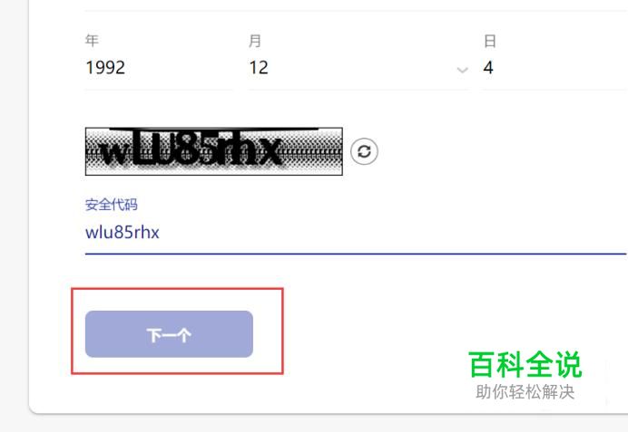 信息输入完毕之后,点击输入页面底部验证码,并点击“下一步”按钮。