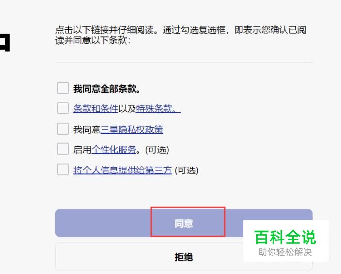 接下来,点击“同意协议”按钮,同意三星账号注册协议。