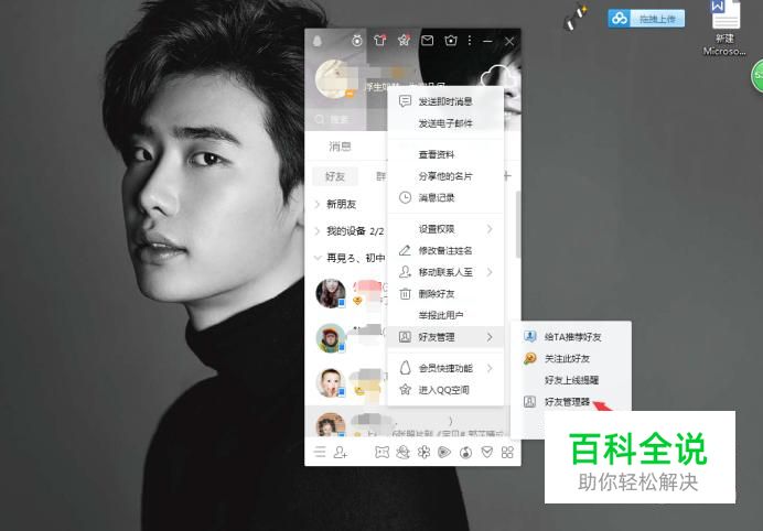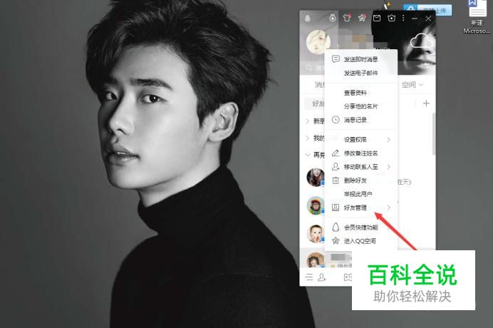 打开你的QQ页面,然后选中其中一个好友点击右键,再点击“好友管理”