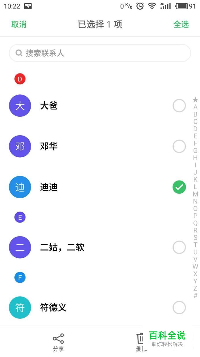 然后我们勾选需要删除的联系人后点击删除就可以批量删除了。如图