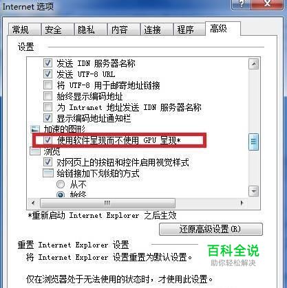解决方案: 尝试过更新显卡驱动、禁用加载项、重置IE、 InPrivate 浏览之后 可使用软件呈现而非图形处理单元 (GPU) 来查看网页
