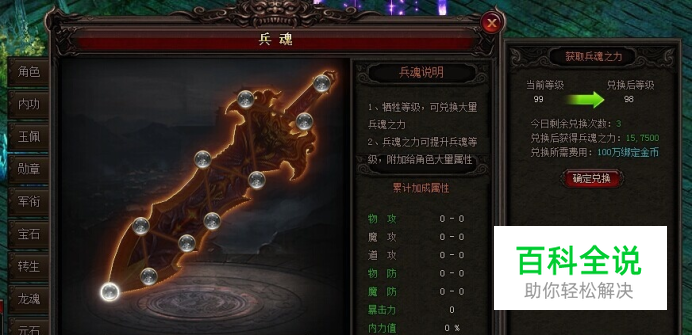 在9377雷霆之怒网页游戏里,很多特殊系统需要消耗大量的材料,才能发挥出其强大的威力,譬如新出的兵魂系统,大家得花费大量的兵魂之力材料,兵魂系统的威力才会发挥出来。那雷霆之怒兵魂系统等级提升消耗多少兵魂之力呢?我们一起来看看雷霆之怒兵魂之力消耗数据攻略便知晓。雷霆之怒兵魂系统开放等级是6转,玩家可对兵魂进行等级提升,提升兵魂等级可获得一些永久的属性加成。目前,兵魂等级共有12级,兵魂等级越高,所激活的属性加成会越好,这也成为玩家后期战斗力提升的一个突破口。玩家提升兵魂等级需要用到兵魂之力值,兵魂等级越高升级消耗的兵魂之力会越多。各级兵魂所消耗的兵魂之力,如下: 兵魂【1级】消耗80000点兵魂之力; 兵魂【2级】消耗320000点兵魂之力; 兵魂【3级】消耗1020000点兵魂之力; 兵魂【4级】消耗2457600点兵魂之力; 兵魂【5级】消耗4915200点兵魂之力; 兵魂【6级】消耗7864320点兵魂之力; 兵魂【7级】消耗11010050点兵魂之力; 兵魂【8级】消耗14313060点兵魂之力; 兵魂【9级】消耗18034460点兵魂之力; 兵魂【10级】消耗22182380点兵魂之力。 由于目前兵魂之力的获得方法比较少,玩家只在角色达到10转时,可牺牲等级兑换兵魂之力,或者利用转生修为来兑换兵魂之力。达到10转要求的玩家,每天可兑换3次兵魂之力,每次兑换消耗100W金币;而转生修为兑换规则是1万点转生修为可兑换7200点兵魂之力。