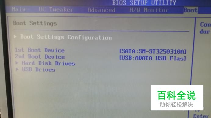 这个版本的BIOS里U盘是归类于硬盘的,所以进入“hard disk drives”选项