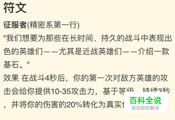 使用方法: 征服者符文提高了英雄的普通攻击力,并造成20%的真实伤害,这对于ADC英雄来说是福音。ADC是团队的主要输出,一个具有高攻击力的ADC能瞬间秒杀对面的英雄。