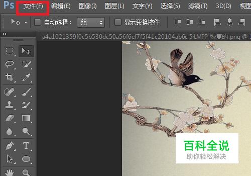 首先,准备好有多个图层的图片,点击菜单栏上的“文件”按钮。