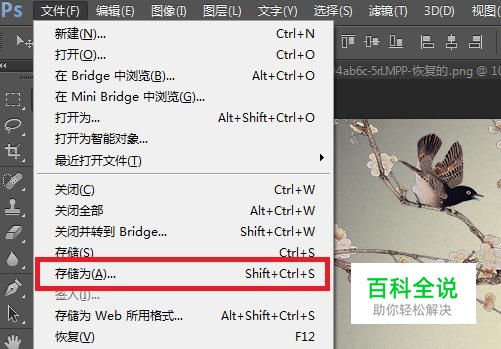 选择“存储为”,接着弹出保存文件的路径、文件名、以及文件格式的选项框。