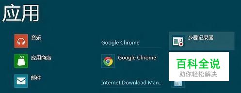 点击搜索,找到步骤记录器(或是在开始屏幕右键选择所有应用找到该工具)。