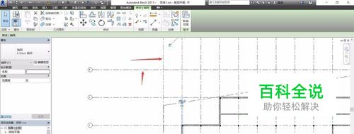 在显示的图纸中, 随意点击一条轴线,在Revit的左侧属性栏中,我们可以看到相应轴线的具体属性信息,轴线的属性信息一般只显示轴线名称。