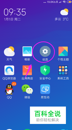 如图所示,在手机上找到设置图标。
