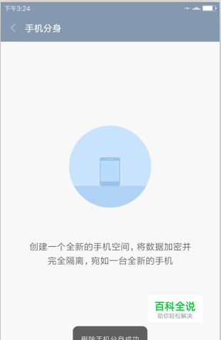7、手机分身成功删除后,会弹出相应的提示。如图所示;