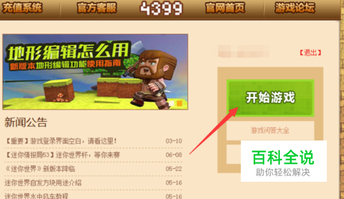 其实4399迷你世界不用特意去更新,在登录游戏之后,点击开始游戏。