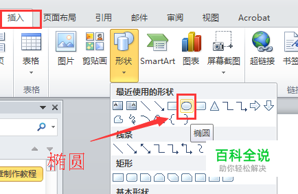 打开word 2010,点击【插入】-【形状】,选择【椭圆形】,然后在word空白区域按住shift拖动,可以画出正圆形。