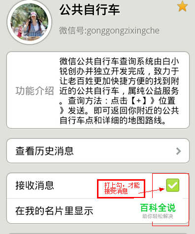 有人问我添加了微信公众号,却无法接收到任何消息,后经查看才发现,原来是没有把“接受消息”选中。如下图所示: