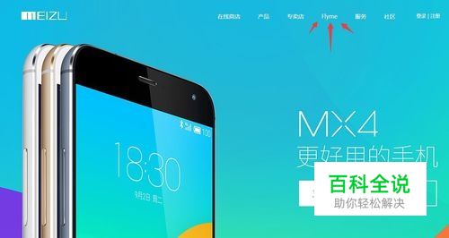 首先我们进入魅族官方网站。然后找到网页上方的Flyme,并点击进入。
