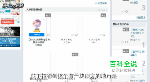 然后进入自己的主页后往下拉看到有一块很大的地方是大家的新作品,随便点一个人的进去,此时你看到的是他的作品页。