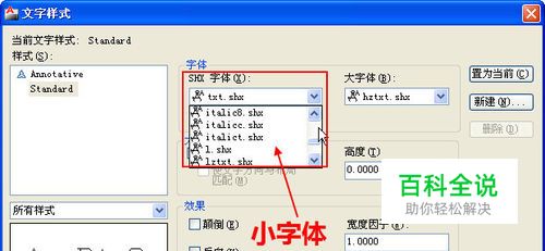 *.shx文件在CAD里叫形文件,它分为两种:字体文件和符号形文件;字体文件又分两种,可以叫做小字体和大字体。 小字体里面只包含一些单字节(在输入法里称为半角)的数字、字母和符号,在文字样式的左侧列表中列出的都是小字体文件,如果文字样式要使用CAD字体,首先必须选择一种小字体。