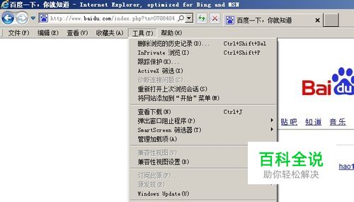 打开IE浏览器,点击菜单: 工具->Internet选项