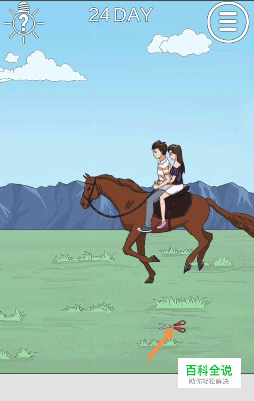 得到口红和剪刀后,将剪刀拖动到缰绳上,然后将口红拖动到马身上就可以过关了。