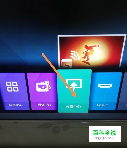 先打开电视机,找到并点击菜单中的分享中心。