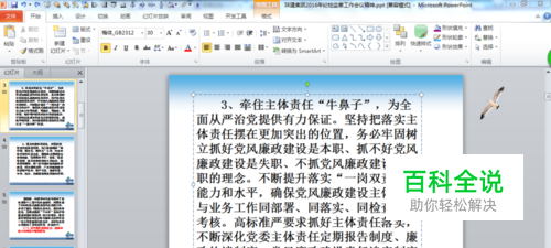 PPT中整体替换字体 2025-05-20 10:22:30 PPT文档中整篇字体不合适,通过整体替换,实现一次性字体替换全部字体,提高工作效率 操作方法 01 打开需要替换的PPT文档 02 开始——替换 03 替换——替换字体——选择合适的字体——替换 04 效果 赞 (0) 相关推荐 PPT怎样批量替换字体 由于需要大幅度更改PPT里面的字体,难道要一张一张的去改吗?这样要花上好久的时间阿,有 没有什么软件可以批量改的吖,其实不用,PPT里面自带的就有一个可以批量修改的功能,下面 我们一起看看要怎样操作吧 ... 如何在PPT中设置主题字体的技巧 随着ppt的应用越来越广泛,我们日常生活.工作.演讲中都被广泛使用,与此同时也要求我们要具备一定的ppt的使用技巧,这里跟大家分享一下如何在ppt中设置肢体字体的技巧,大家以作参考. 操作方法 01 ... PPT中smartart图形怎么旋转?PPT中整体旋转或翻转smartart图形的方法介绍 powerpoint中smartart图形怎么做整体旋转?SmartArt图形在PPT中用途很大,并且也有很大的作用,但如果使用的比较频繁,就会发现一个问题,如果要进行整体旋转或者是翻转,那这样要怎么 ... 电脑PPT中超链接的字体样式和字体颜色如何更改 大家知道吗?ppt是可以修改超链接颜色字体样式的,让我们的超链接和背景样式或主体更加搭配.今天小编就告诉大家怎么修改.具体如下:1. 第一步我们需要先选中链接所标注的字体.2. 选中之后点击上方工具栏 ... ppt中如何保存字体样式 ppt中经常会遇到字体不识别,在电脑本地编辑正常,但是拿到别的电脑播放ppt就会出现异常无法显示的情况,这里就可以通过在本地ppt保存字体样式来解决该现象,下面就来ppt中如何保存字体样式的具体操作方 ... PPT中如何安装字体? 文字是PPT中必不可少的内容,不同字体可以有不同的效果,但是有的字体PPT中并没有,那么PPT中如何安装字体呢?下面小编就来给大家介绍一下. 操作方法 01 首先我们在网上下载好我们所需要的字体,然后 ... 如何将PPT中所有的字体改变颜色 如何将ppt中所有的字体改变颜色呢?今天,小编就来教大家一个小技巧! 操作方法 01 打开ppt,我们先输入文字. 02 点击"视图",选择"幻灯片母版". 0 ... PPT中如何给字体添加颜色? 我们在编辑PPT的时候可能会遇到很多的问题,其中有一个就是美观的问题.运用PPT不仅仅是为了解决问题,它在解决问题的时候应该给人视觉上美的享受,而其中有一个就是字体颜色的美观度.接下来小编讲一下如何设 ... ppt中如何设计字体突出的感觉 ppt设计感呈现是很多ppt人士一直致力于追求的,而且大家也想有自己的创新在里面,今天跟大家分享的是一个简单易做的设计,此设计源于一句话:就算是Believe,中间也藏了一个lie,今天不拿这个举例, ...
