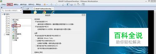打开vmware软件,点击菜单编辑->首先项,打开首选项窗口,然后点击显示选项,可以在右侧显示显示相关的设置。主要是自动适应和全屏两组选项。