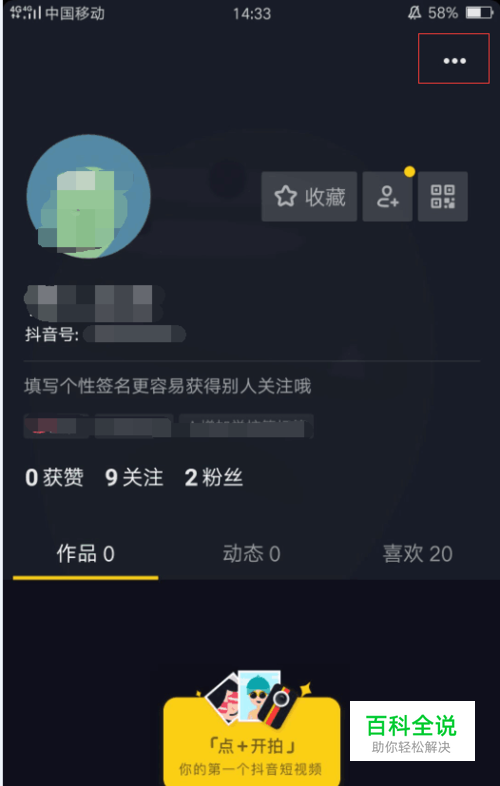 首先,在手机上找到抖音并打开它,然后进入个人信息界面,点击个人信息界面右上角的三点图标。