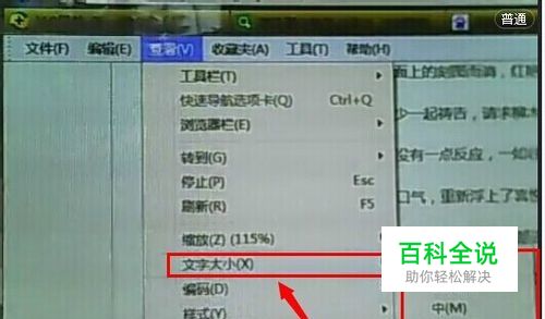 在浏览器的左上角点击“查看”,点击“文字大小”,然后选择自己合适的字体大小。