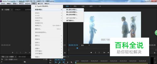 接着点击菜单栏中的 字幕→新建字幕→默认静态字幕(这里只介绍字幕插入方法,如需高级操作请自行学习)