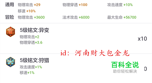 百穿铭文: 如图。这套铭文适合大多数AD、ADC,小编之前已经给大家介绍了,具体可以参考下面一篇经验。 其实有很多人给小编说,蓝色出夺萃更好,不过个人感觉,曹操技能、出装足够了,毕竟后面要半肉半攻,狩猎性价比更高。 实在操作不行的话,蓝色换成夺萃,前期可以增加生存能力。