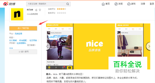 第一步,在百度输入nice后查找,第一个就是,也可以直接通过其他手机助手软件中下载如百度手机助手可以直接输入软件名称安装即可。