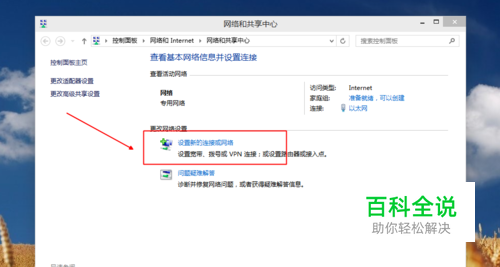 打开“网络和共享中心”后,点击“设置新的连接或网络”。