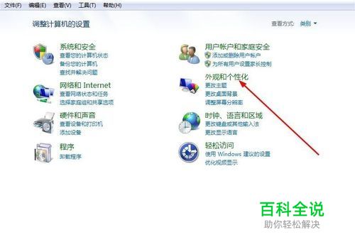 在控制面板中找到外观和个性化