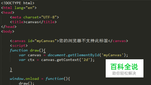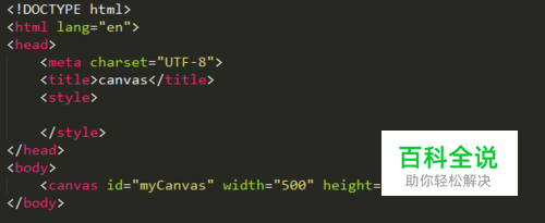 新建一个html5的文档,建立一个canvas画布,设置长宽,这里需要特别注意,canvas标签可以在标签内设置width,height,也能通过css来设置,但是通过css来设置的标签,当绘制图形的时候会变形,所以我们建议直接在标签内设置。
