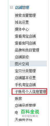 第一步:首先打开并登陆商家后台, 天猫店铺找到《子账号个人信息管理》。 淘宝店铺找:《子账号管理》 或者直接复制链接打开:https://zizhanghao.taobao.com/subaccount/index.htm?isOpen=false&_redirect=1