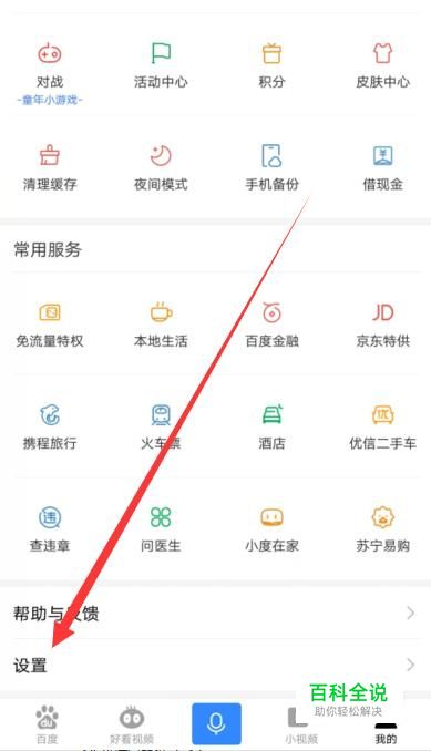 打开百度手机APP,在“我的”页面,找到设置点击并进入。