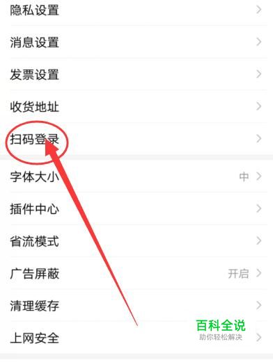 在设置页面找到“扫码”登录,进入下一页面。